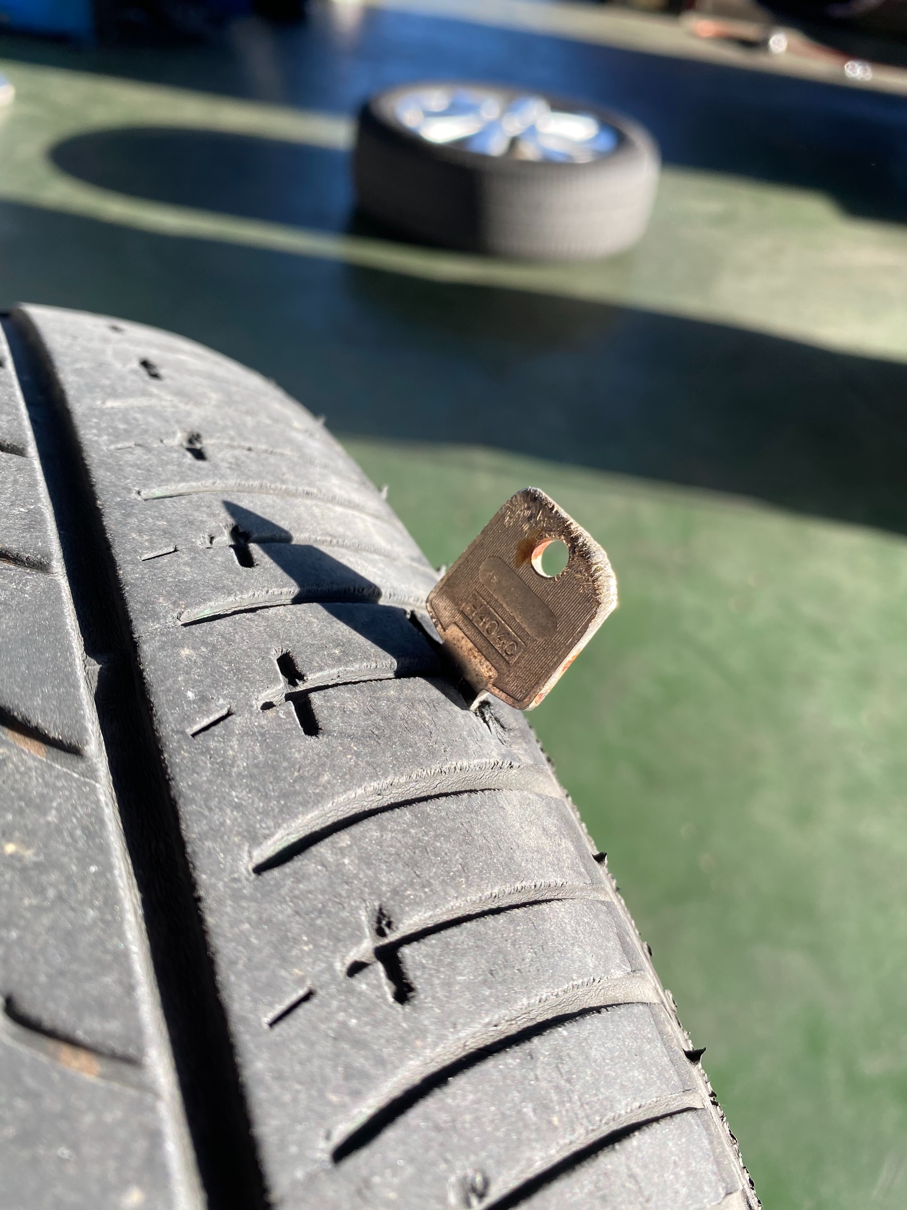 突然のパンク こんな事もあります タイヤ オイル関連 ブレーキオイル交換 サービス事例 タイヤ館 勝田 茨城県のタイヤ カー用品ショップ タイヤからはじまる トータルカーメンテナンス タイヤ館グループ